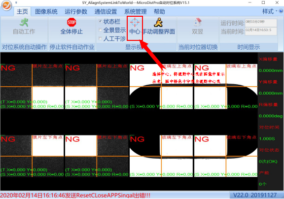 軟件上點擊中(zhong)心,在圖(tu)像中(zhong)可(ke)以看到橙色的十(shi)(shi)字(zi)(zi)線,這個(ge)為(wei)視野中(zhong)心,在產品(pin)上料過程中(zhong),我們(men)需(xu)要將產品(pin)放置到橙色十(shi)(shi)字(zi)(zi)交點即(ji)視野中(zhong)心位置。