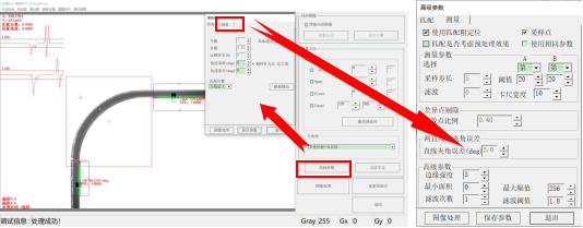 ? Step3:調整高級參數。點擊“高級參數”,進入高級參數界面,調整參數如下圖 9與圖 10。可根據(ju)實際情況修改(gai)“分數(shu)”、“角(jiao)度容差”、“濾波次數(shu)”、“有效點比(bi)例(li)”、“直線夾角(jiao)誤差”等參數(shu)。