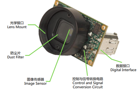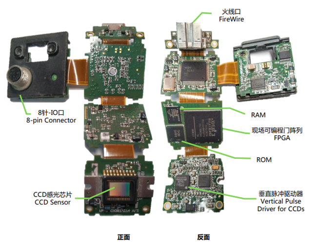 CCD是目前機(ji)器視覺最為(wei)常用的(de)圖(tu)像傳(chuan)感(gan)器。CCD相(xiang)機(ji)由防(fang)塵片(pian)、傳(chuan)感(gan)器芯(xin)片(pian)、FPGA、RAM和ROM、火線口和I/O接口等(deng)組成(cheng)。
