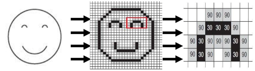 像(xiang)素:感光(guang)器件(jian)上的(de)(de)基本感光(guang)單元(yuan),即相機識別(bie)到的(de)(de)圖(tu)像(xiang)上的(de)(de)最(zui)小(xiao)單元(yuan)(圖(tu)中的(de)(de)每(mei)一個(ge)小(xiao)格就是一個(ge)像(xiang)素)。