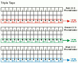 雖然(ran)3 CCD各別(bie)有獨立(li)的(de) Data Clock, 但是(shi)因為(wei)必(bi)需要(yao)R, G, B 的(de)數據組合在(zai)一(yi)起(qi)才會變成線性(xing)的(de)彩色影像(xiang), 所以實際速度并沒有因為(wei)每個CCD 有獨立(li)的(de) Data Clock而加快(kuai)。