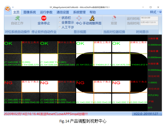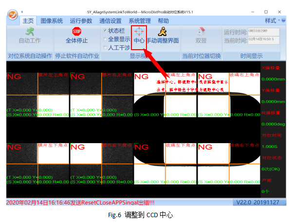 軟件上點擊中(zhong)(zhong)(zhong)心(xin),在圖像中(zhong)(zhong)(zhong)可以看到橙色(se)的十字線(xian),這(zhe)個(ge)為視野(ye)中(zhong)(zhong)(zhong)心(xin),在產品上料(liao)過程中(zhong)(zhong)(zhong),我(wo)們(men)需要將產品放置到橙色(se)十字交點即(ji)視野(ye)中(zhong)(zhong)(zhong)心(xin)位置。