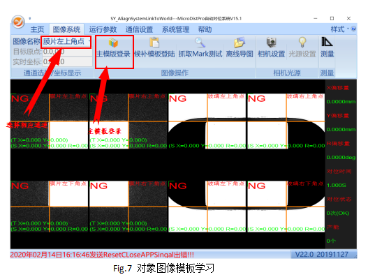 Step1:如圖7所示,通過“通道名稱(cheng)”處(chu)選擇我們要(yao)進行模(mo)板學(xue)習的通道:“膜片左上角點”,然后點擊“主模(mo)板登錄”進行圖像的模(mo)板學(xue)習。