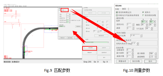 Step3:調整(zheng)高級(ji)參(can)數(shu)。點擊“高級(ji)參(can)數(shu)”,進(jin)入高級(ji)參(can)數(shu)界(jie)面,調整(zheng)參(can)數(shu)如下圖9與圖10。可根據實(shi)際情況(kuang)修改“分(fen)數(shu)”、“角度容差(cha)”、“濾波次數(shu)”、“有效點比例”、“直(zhi)線(xian)夾(jia)角誤差(cha)”等參(can)數(shu)。