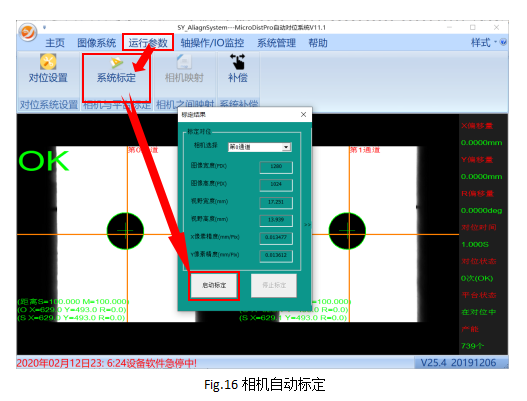系統全體停止的(de)狀態下點擊(ji)“運(yun)行(xing)參數”->“系(xi)統標(biao)定”,彈出標(biao)定界面(mian)后,點擊(ji)“啟動標(biao)定”即可(ke)開始標(biao)定,系(xi)統提示(shi)標(biao)定完成即完成標(biao)定。