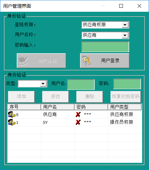 ②在用戶管理界面,輸入供應商權限密碼:“310525”,點擊“用戶登(deng)陸”,進入軟件管理權。