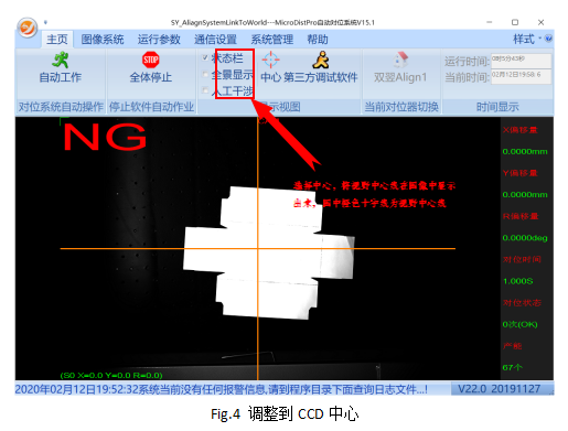 軟件上點擊中(zhong)(zhong)心,在圖(tu)像中(zhong)(zhong)可以看到橙(cheng)色(se)的(de)十(shi)字線,這個為視(shi)野(ye)中(zhong)(zhong)心,在面(mian)(mian)紙上料(liao)過程(cheng)中(zhong)(zhong),我(wo)們需(xu)要將面(mian)(mian)紙的(de)特征點放置到橙(cheng)色(se)十(shi)字交點即(ji)視(shi)野(ye)中(zhong)(zhong)心位置。