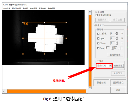 ? Step2:如(ru)圖6所示(shi),下拉(la)重新選擇“邊緣匹配”,黃色的模板框工具則(ze)會顯示(shi)出來,通過(guo)拖拽調整位(wei)置(zhi)和大小(xiao)到合(he)適,再點(dian)擊“方法學習”,則(ze)學習記錄當(dang)前的模板。