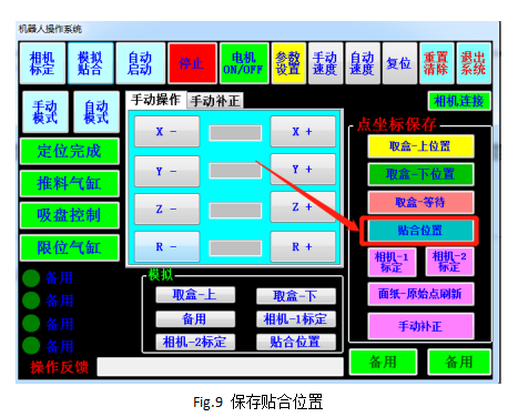 將機械手移動到(dao)貼(tie)合(he)的(de)位(wei)置(zhi),將此位(wei)置(zhi)保存(cun)為貼(tie)合(he)位(wei)置(zhi)。
