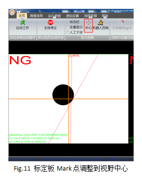 機械手吸起標定板(ban),將圓(yuan)形Mark移動到圖像視野中心。