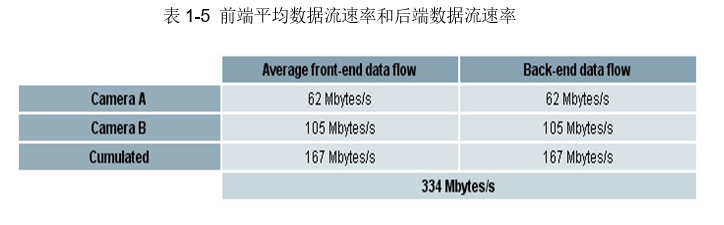 一個白攝像機(Dual-W),Data Clock Speed是40 MHz數據(ju)時鐘。從表1-1可以看出Tap structure 為Dual-W的(de)時候(hou),其Mulitplier為4,所(suo)以前端的(de)峰值數據(ju)流量為160MByte/S。
