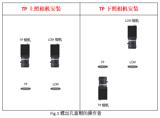 相(xiang)機的(de)安裝方(fang)向:以操作者(zhe)站立調(diao)試(shi)的(de)位(wei)置為基準(一(yi)般就是顯(xian)示(shi)器的(de)位(wei)置),相(xiang)機的(de)螺絲(si)孔面朝(chao)向操作者(zhe),標簽面(即正面)遠離操作者(zhe)。這樣(yang)才能保證實際(ji)圖(tu)像和顯(xian)示(shi)器圖(tu)像保持一(yi)致性(xing),方(fang)便調(diao)試(shi)。