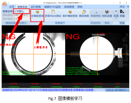 ? Step1:如圖7所示,通(tong)過“通(tong)道名稱(cheng)”處選(xuan)擇我們(men)要進行模(mo)板(ban)(ban)學習的(de)通(tong)道:“LCM圓心(xin)”,然后進行“主(zhu)模(mo)板(ban)(ban)登錄(lu)”進行圖像(xiang)的(de)模(mo)板(ban)(ban)學習。
