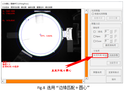 ? Step2:如(ru)圖8所(suo)示,下拉重新選(xuan)擇“灰(hui)度匹配(pei)+圓(yuan)(yuan)心(xin)(xin)”,黃色的模板框(kuang)工(gong)具和藍色的圓(yuan)(yuan)心(xin)(xin)工(gong)具則(ze)會顯示出來,通過拖拽調整使圓(yuan)(yuan)心(xin)(xin)工(gong)具的中(zhong)環與Mark圓(yuan)(yuan)形邊(bian)緣(yuan)相(xiang)接,模板框(kuang)位置和大(da)小(xiao)到合適(shi),再點擊(ji)“方法學(xue)習”,則(ze)學(xue)習記(ji)錄當前的模板。