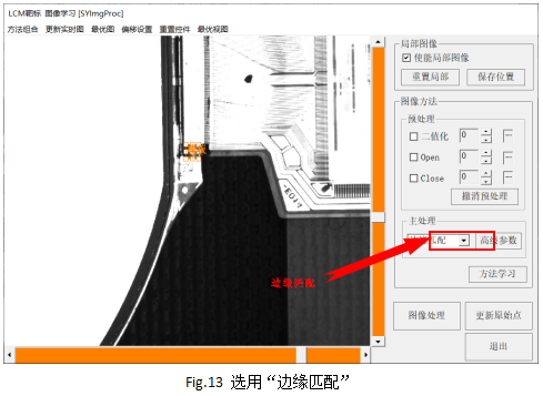? Step3:如下圖13所示(shi),下拉(la)重新選擇“邊緣匹(pi)配”,黃(huang)色的(de)模(mo)板框工具則(ze)會顯示(shi)出(chu)來,通過拖拽(zhuai)調整(zheng)使模(mo)板框位置和(he)大小(xiao)合(he)適,再(zai)點擊“方法學(xue)習(xi)”,則(ze)學(xue)習(xi)記(ji)錄當前的(de)模(mo)板。