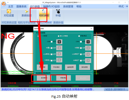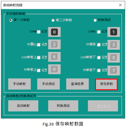 系(xi)統全(quan)體停止的狀態(tai)下,打開(kai)相(xiang)機(ji)映(ying)射界面,放置好TP,點擊(ji)“啟動(dong)映(ying)射”,抓(zhua)點OK完(wan)成第一次(ci)映(ying)射后,再點擊(ji)“轉換測(ce)(ce)試”進行(xing)一次(ci)轉換測(ce)(ce)試。