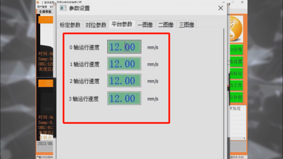 平(ping)臺界面: 設置對(dui)位平(ping)臺軸(zhou)的自動運行速度;點擊數字(zi)框(kuang)輸入目標數值即(ji)可;