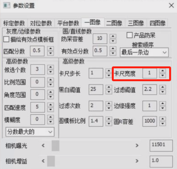 卡尺寬度(du):形(xing)狀擬合的像素采樣寬度(du)值(zhi);(參(can)考設(she)置值(zhi):10)