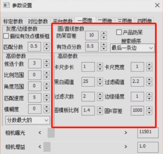 圓/直線工具參數:相對應本(ben)系統圖像學習方法有:“圓形”、“直線交點”、“單直線”。