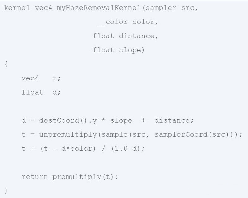 更早些時(shi)候,在2004年,Apple提供了這部(bu)分(fen)代碼,可用(yong)于自定義圖(tu)像效(xiao)(xiao)果。可以改變向量(liang)和浮(fu)點數的(de)值以實現所需的(de)任何效(xiao)(xiao)果。