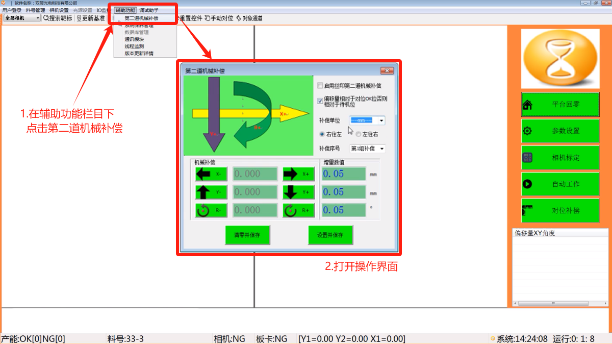 在主界(jie)面上側菜單,找(zhao)到(dao)輔(fu)助功(gong)能(neng)功(gong)能(neng)欄(lan)下的第(di)二道(dao)機械補償,點擊打開