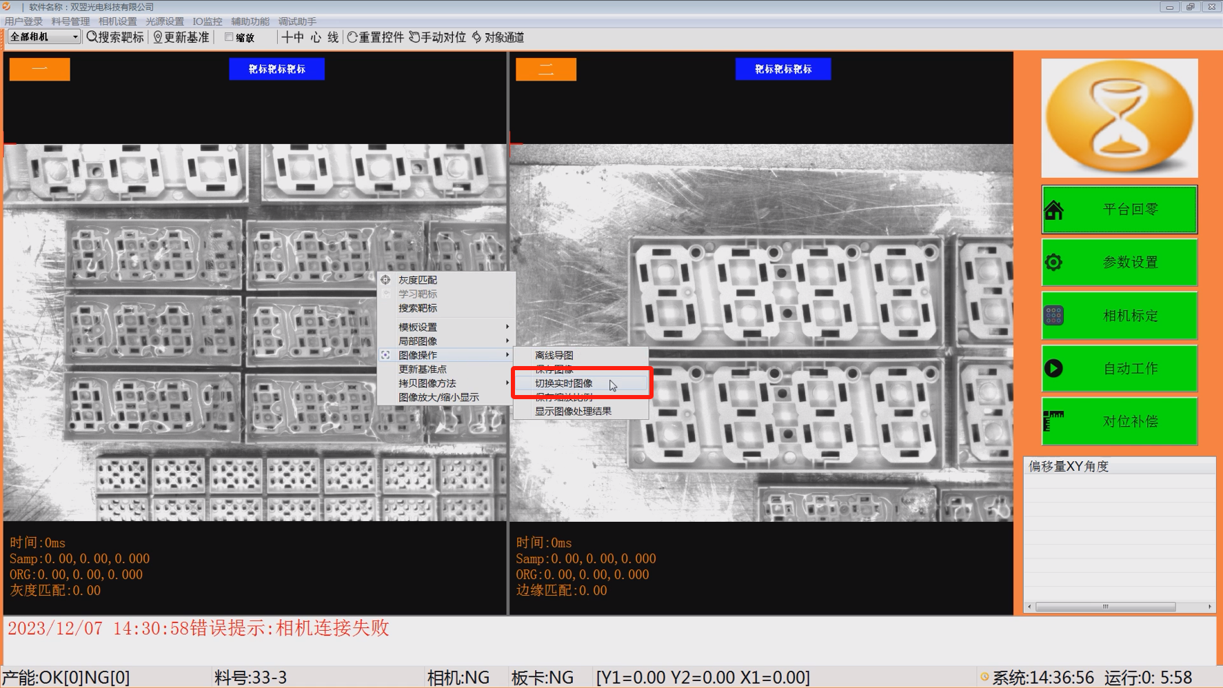 圖像(xiang)顯示區域,點擊鼠(shu)標右鍵,鼠(shu)標移動(dong)到圖像(xiang)操作,點擊選擇切換(huan)實(shi)時(shi)圖像(xiang)