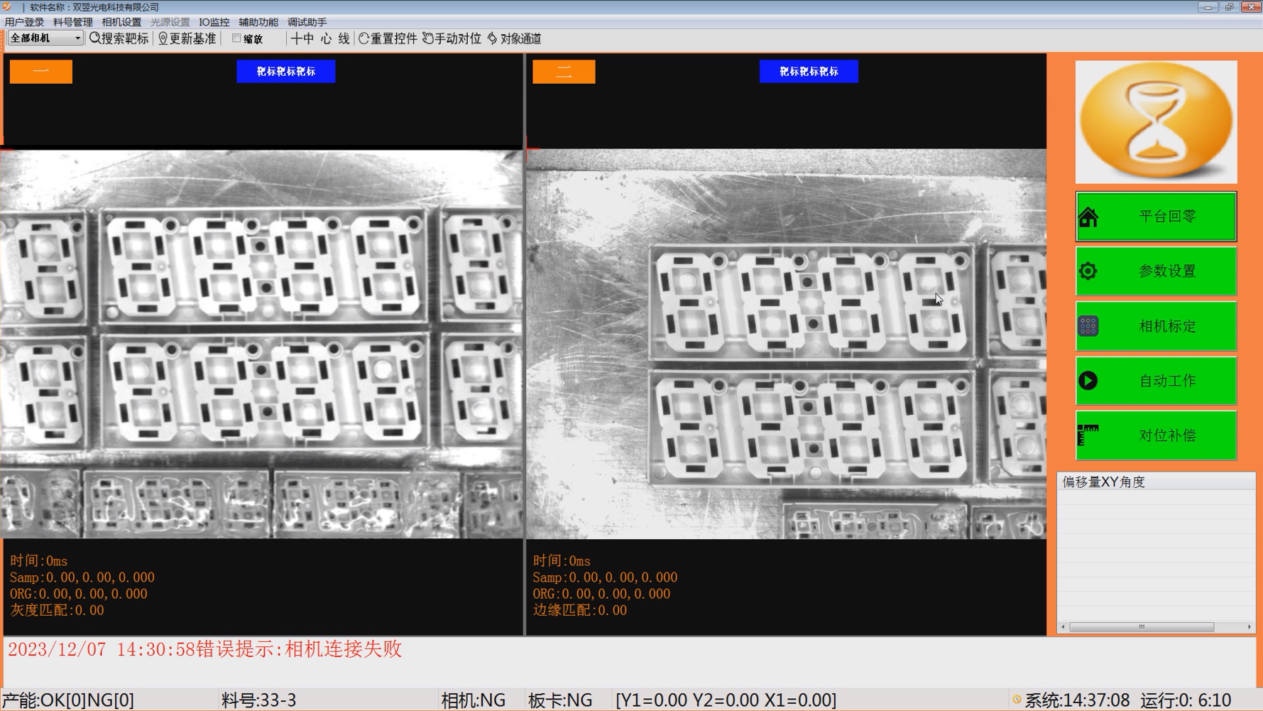 運(yun)行(xing)WiseAlign.exe程序(xu),進(jin)入軟件可(ke)以看到,主界面主要分4個(ge)區(qu)域(yu)(左(zuo)上角(jiao):工具欄;右側:功能按鈕;中間:圖像(xiang)顯示;下側:報警信息)