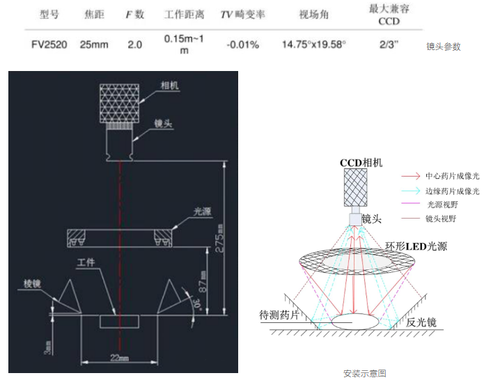 劃痕、字符(fu)等(deng)信(xin)息,相對(dui)于(yu)藥片表面來說,景深差距較小(xiao),因此相機(ji)的(de)靈敏度(du)是(shi)本(ben)系(xi)統(tong)(tong)首要(yao)考慮的(de)因素。其次,為(wei)了便于(yu)后續(xu)圖像的(de)分析處理,本(ben)系(xi)統(tong)(tong)應該選擇(ze)(ze)噪(zao)聲(sheng)點較小(xiao)相機(ji)。最后,實(shi)時性(xing)好和精度(du)高是(shi)本(ben)藥片檢測系(xi)統(tong)(tong)的(de)首要(yao)要(yao)求(qiu),因此從速(su)度(du)和分辨率角(jiao)度(du)分析,1200萬像素的(de)CCD面陣相機(ji)依然是(shi)本(ben)系(xi)統(tong)(tong)的(de)最優(you)選擇(ze)(ze)。