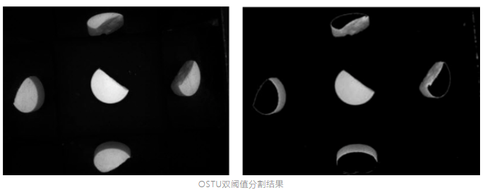 冗余信息過多:為了準確地(di)提取藥(yao)(yao)片(pian)缺陷特征,需要(yao)從藥(yao)(yao)片(pian)圖像中分(fen)(fen)離出藥(yao)(yao)片(pian)信(xin)息,其中要(yao)求得到的藥(yao)(yao)片(pian)信(xin)息包含(han)藥(yao)(yao)片(pian)缺陷可能(neng)(neng)存在的任何區(qu)域,同時盡可能(neng)(neng)地(di)減少藥(yao)(yao)片(pian)信(xin)息的冗余。采用OSTU雙邊閾值分(fen)(fen)割法對藥(yao)(yao)片(pian)圖像進行預(yu)分(fen)(fen)割。
