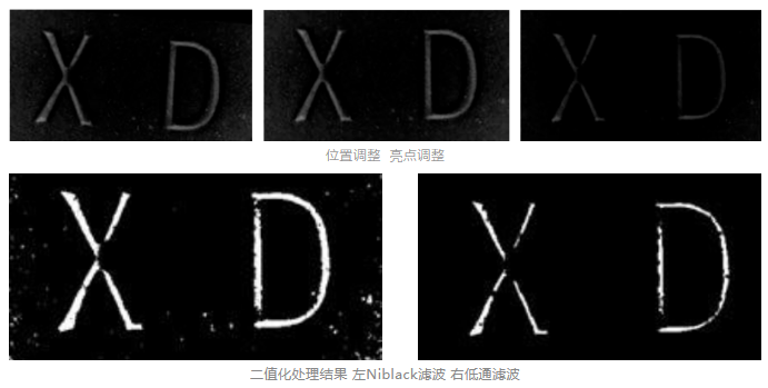 因為藥(yao)片是隨機放(fang)置(zhi)的,所以需(xu)要對采集圖(tu)像(xiang)上的字(zi)符進(jin)行調整(zheng)。經過(guo)掩膜法(fa)(fa)提取藥(yao)片字(zi)符區域,經過(guo)亮度(du)調整(zheng)后,字(zi)符的噪(zao)聲減少了很多。現通過(guo)二值法(fa)(fa)提取字(zi)符特征(zheng)。最后再通過(guo)二值法(fa)(fa)提取字(zi)符特征(zheng)。