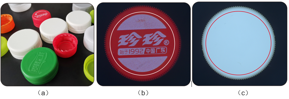 圖5:(a)被(bei)檢測瓶蓋實物圖;以及合(he)格(b)和不合(he)格(c)的產品。