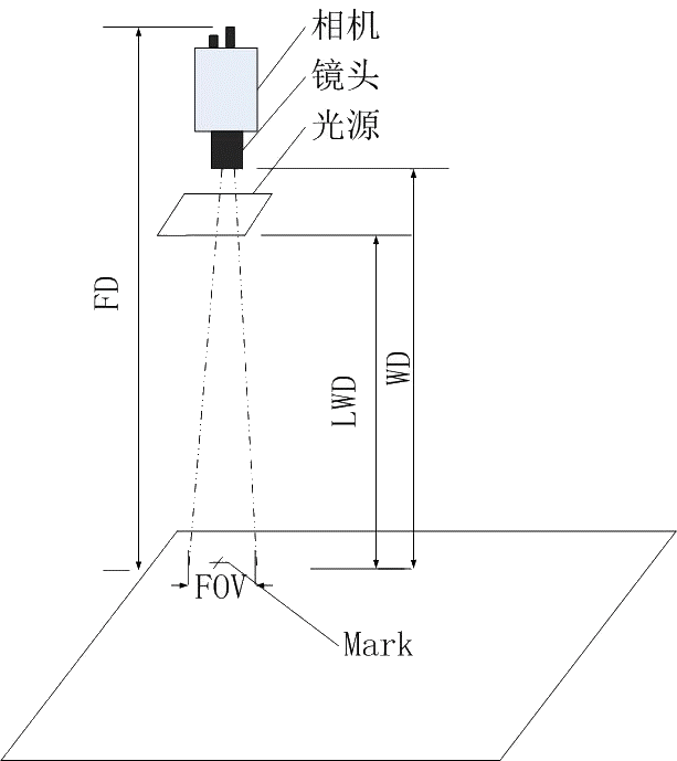 2、 WD(WorkDistance)一般概念為(wei)工作距(ju)離或者物距(ju),即從鏡頭(tou)的下端(duan)面到(dao)檢測工件表面的距(ju)離,這個部分需(xu)要(yao)客戶提供(gong),因為(wei)有些客戶的機臺已經(jing)做好,安裝的空間有限,需(xu)要(yao)客戶給(gei)出。