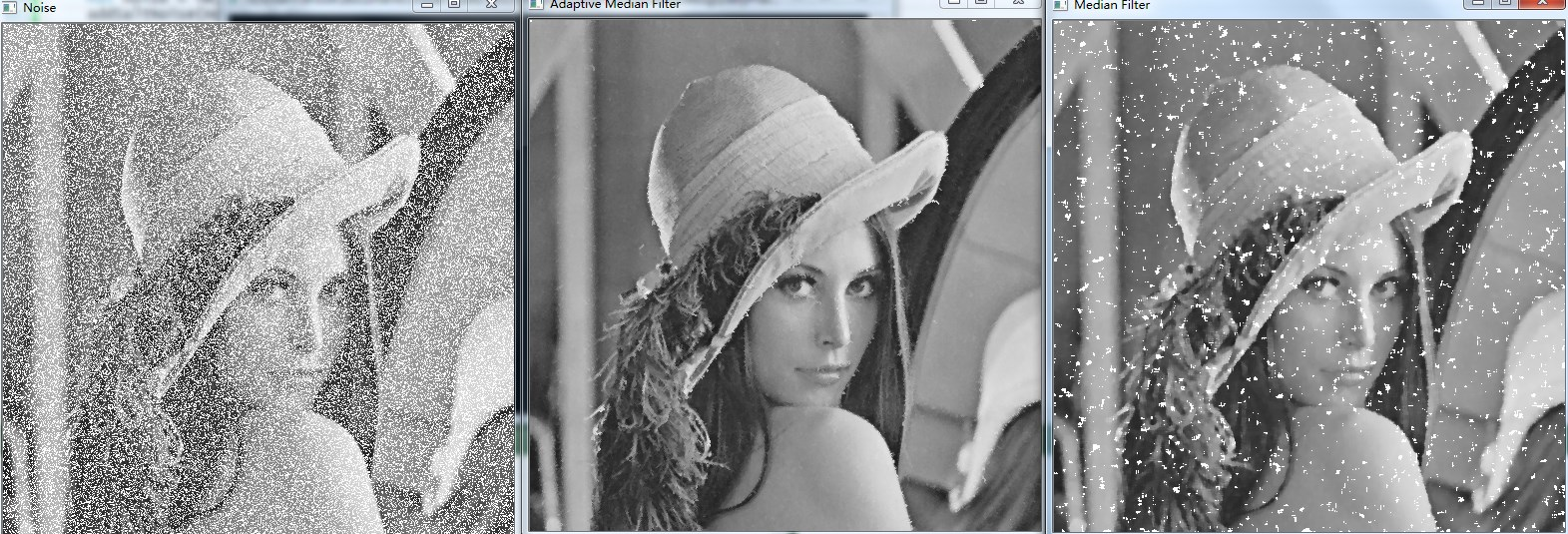本(ben)文主要介紹(shao)了(le)自適(shi)應(ying)的中值(zhi)濾(lv)(lv)(lv)波器(qi)(qi),并基于OpenCV實現(xian)了(le)該濾(lv)(lv)(lv)波器(qi)(qi),并且將自適(shi)應(ying)的中值(zhi)濾(lv)(lv)(lv)波器(qi)(qi)和常(chang)規的中值(zhi)濾(lv)(lv)(lv)波器(qi)(qi)對(dui)不(bu)同概率的椒鹽噪聲的過(guo)濾(lv)(lv)(lv)效果(guo)進行了(le)對(dui)比。最后(hou),對(dui)中值(zhi)濾(lv)(lv)(lv)波器(qi)(qi)的優(you)缺(que)點了(le)進行了(le)總結。
