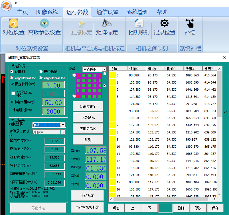 標定檢查:X像素精度與(yu)Y像素精度數值越接近越好!