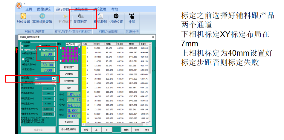 上相機(ji)標定(ding)為40mm設置好(hao)標定(ding)步(bu)距否則標定(ding)失敗