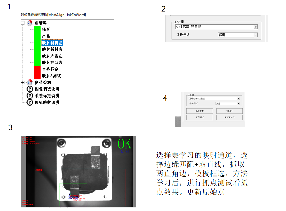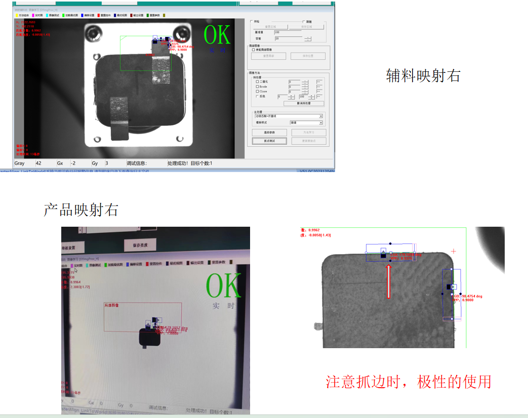輔料映射抓取的邊緣要跟產品映射(輔料跟產品左右兩通道要對應)抓取的邊也要一一對應,否則映射數據不成(cheng)功(gong)