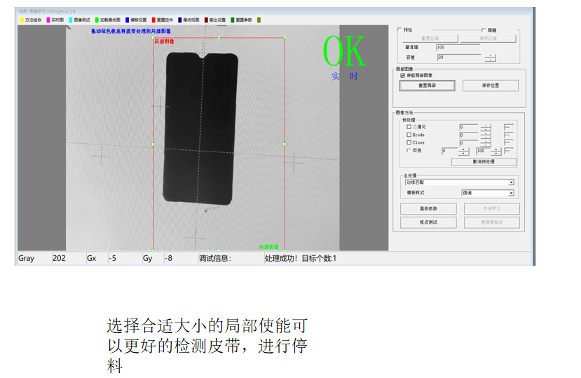 通(tong)過鼠標操作ROI選定模板,進入(ru)【高級參(can)數】設置匹配(pei)角(jiao)度(du)范圍,最小相似度(du)分數,并可修改(gai)模板。