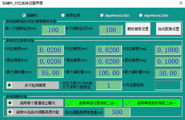 XYR對(dui)位精(jing)度(du):設(she)置X對(dui)位精(jing)度(du),當系(xi)統達到設(she)定精(jing)度(du)范圍內(nei)則對(dui)位OK。