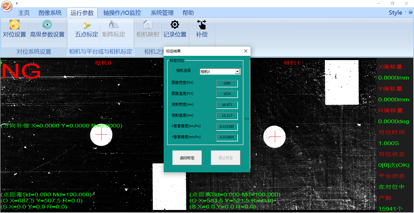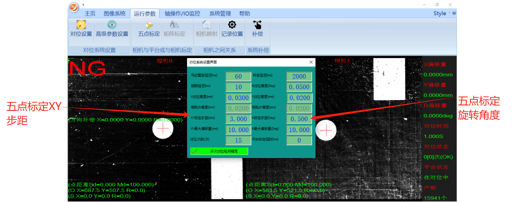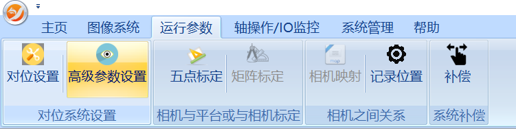 運行參數包括對位設置、高級參數設置、五點標定(ding)、補償。