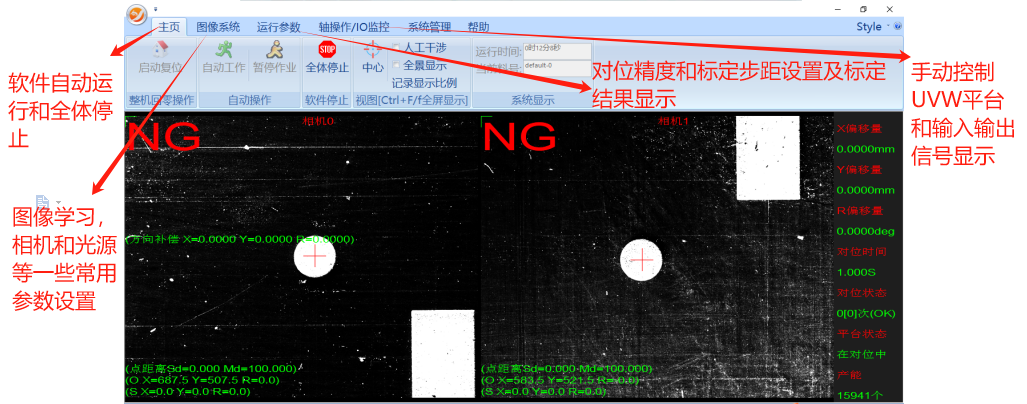 點(dian)擊啟動(dong)標定后,控制UVW平臺走(zou)偏移量完成相機標定