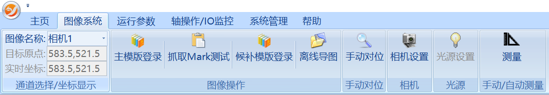 圖像系統(tong)包括主模板登錄、抓取mark測試、候補模板登錄、離(li)線(xian)導圖、手動對位、相機設置(zhi)。