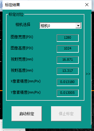 視野高度:顯示五(wu)點標(biao)定后標(biao)定通道相機視野短邊方向長度;