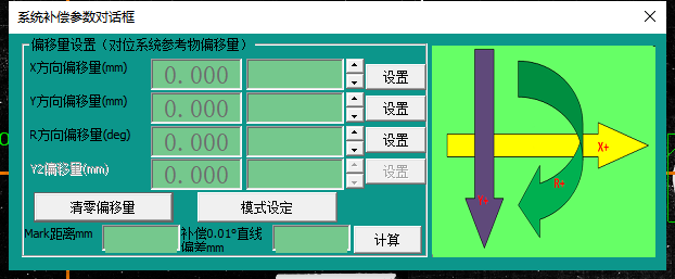 根據補(bu)償(chang)方向圖示,在右側(ce)對應的方向補(bu)償(chang)寫入補(bu)償(chang)數值后,點(dian)擊(ji)“設(she)置(zhi)”累(lei)加(jia)到(dao)左側(ce)的總(zong)補(bu)償(chang)參數中(zhong)。