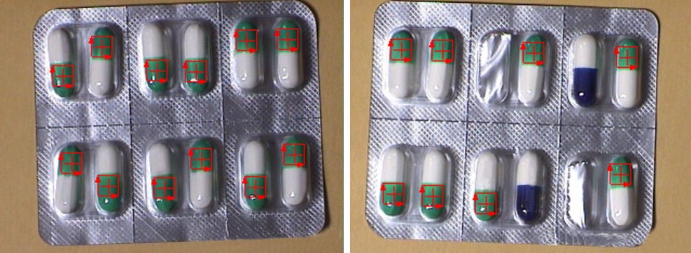 機器(qi)視覺檢測(ce)設(she)備通過模式匹(pi)配與顏色識別,確(que)定(ding)一個(ge)包(bao)裝(zhuang)(zhuang)是否有正確(que)的(de)(de)數量和(he)類(lei)型的(de)(de)藥(yao)片。檢查包(bao)裝(zhuang)(zhuang)中藥(yao)丸的(de)(de)數量和(he)每顆藥(yao)丸的(de)(de)顏色,對不(bu)合格包(bao)裝(zhuang)(zhuang)發(fa)出報警或剔除。