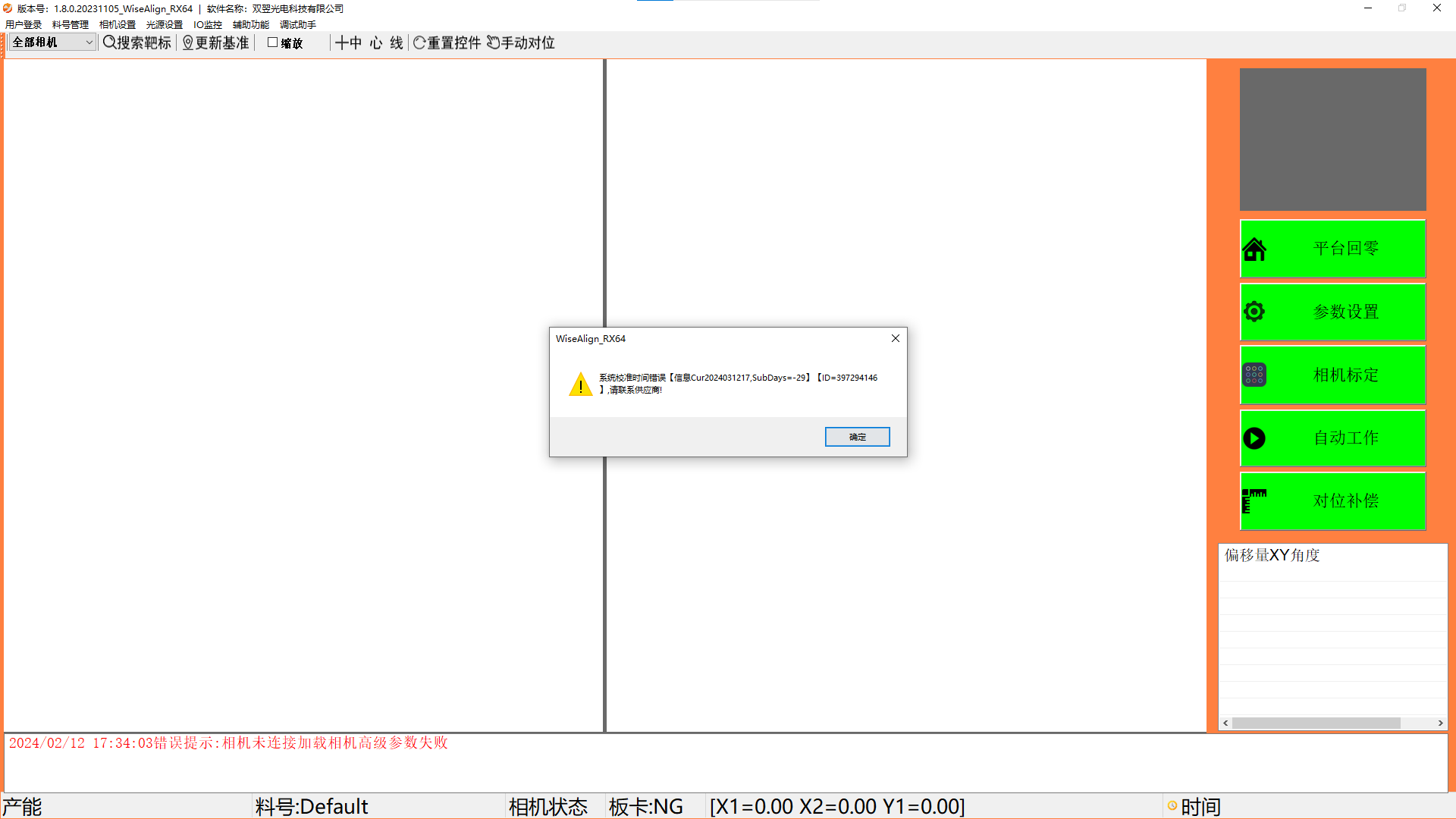 WiseAlign視覺對位軟件提示系統校準時間錯誤解決方案