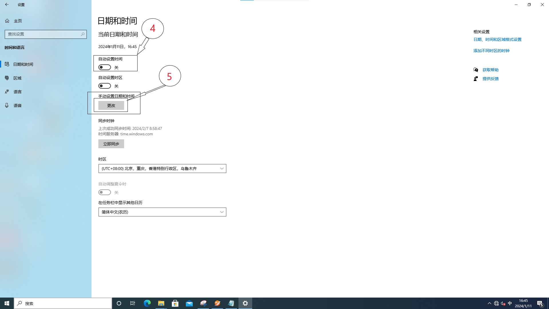 5、將(jiang)系統時(shi)間設置成標準時(shi)間 >> 點擊“更改”>>點擊“X”關閉頁(ye)面