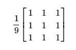 當濾波器的(de)(de)模板(ban)的(de)(de)所有(you)的(de)(de)系數(shu)都相等時稱之(zhi)為(wei)盒狀濾波器 Box Filter。其使用的(de)(de)模板(ban)如下(3×3 為(wei)例):