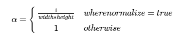 和blur的(de)參(can)數(shu)(shu)比較(jiao)類似(si),所不同(tong)的(de)ddepth是濾波后(hou)圖像的(de)深度(du)(du),-1表示和原圖像的(de)深度(du)(du)相同(tong);參(can)數(shu)(shu)normalize表示是否有歸一化的(de)參(can)數(shu)(shu),這是因(yin)為(wei)在boxFilter使用的(de)模板(ban)如(ru)下(xia):