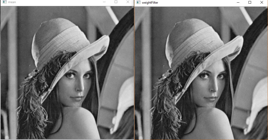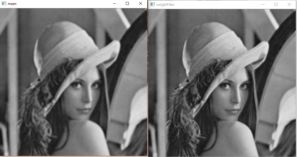 加權的均值濾波器去噪效果和均值濾波器相當,但是在保護圖像細節方面比均值濾波器效果要好,上圖是3×3的濾波器,窗口較小,兩者的區別不是較大。