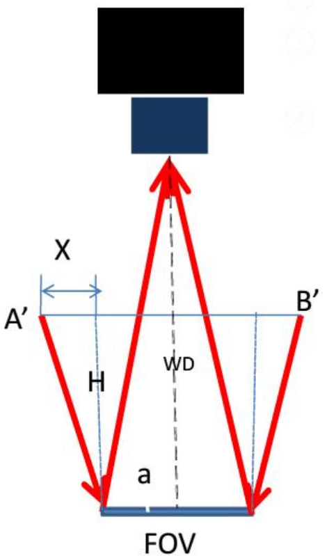 ② 當H=WD/2時,要得到均勻光(guang)照,需要光(guang)源外(wai)徑A'B'為1.5FOV